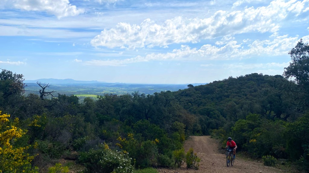A rider overtook me on the way into the village, then he sailed past the next turn and I ended up yelling at him until he turned around. We now left the farmland behind and the track rose up into the forested hills of the Gironès. My GPS told me I’d done about 600m of climbing, so half the hills done… really? Riders came and passed me. I was fine, just not fast. Steady.